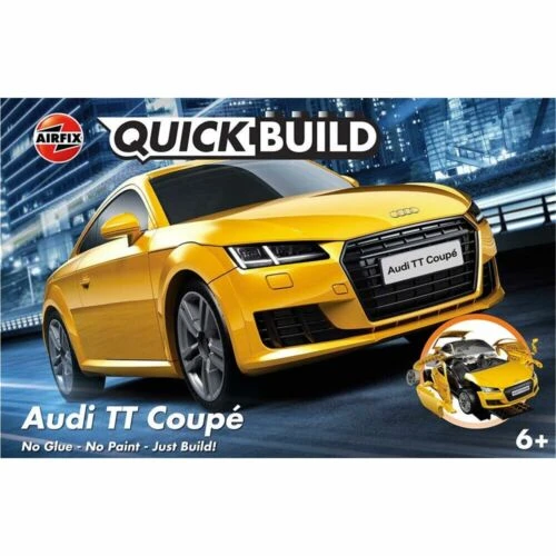 What is QUICKBUILD?Airfix QUICKBUILD is an exciting range of brick-based models suitable as an introduction to modelling for any age of 6 and up. The pre-coloured pieces simply push together to build an impressive model which can then be decorated with the included self-adhesive stickers. No paint or glue is needed to make these fantastic models look like the real thing, and once completed theres no evidence of any of the brick fittings showing. When built they are tough enough to be used as toys, or smart enough to use as display models. Either will show off those great modelling skills!Included with each model are a full set of easy-to-follow colour instructions, free-rolling wheels for cars and tanks, and display stands for all the aircraft. Audi TT Coupe The TT is an excellent choice for someone that wants a great quality sports coupe. It offers an engaging driving experience with a touch more practicality than some of its rivals. This 2-door sports coupé with Audi Virtual Cockpit, automatic retractable rear spoiler comes with more advanced technology and striking enhancements to its iconic design. Really a sports car for everyone! This model comes with 44 pieces.Trademarks, design patents and copyrights are used with approval of theowner Audi AG.