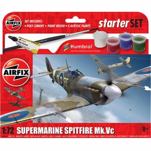 Airfix Supermarine Spitfire MkVc Starter Set. 1.72 Scale. Inc Glue and Paints.