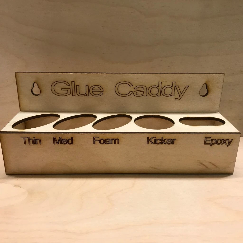 This caddy holds Thin & Medium Cyano Glue, As well as Foam safe, Kicker & Epoxy.