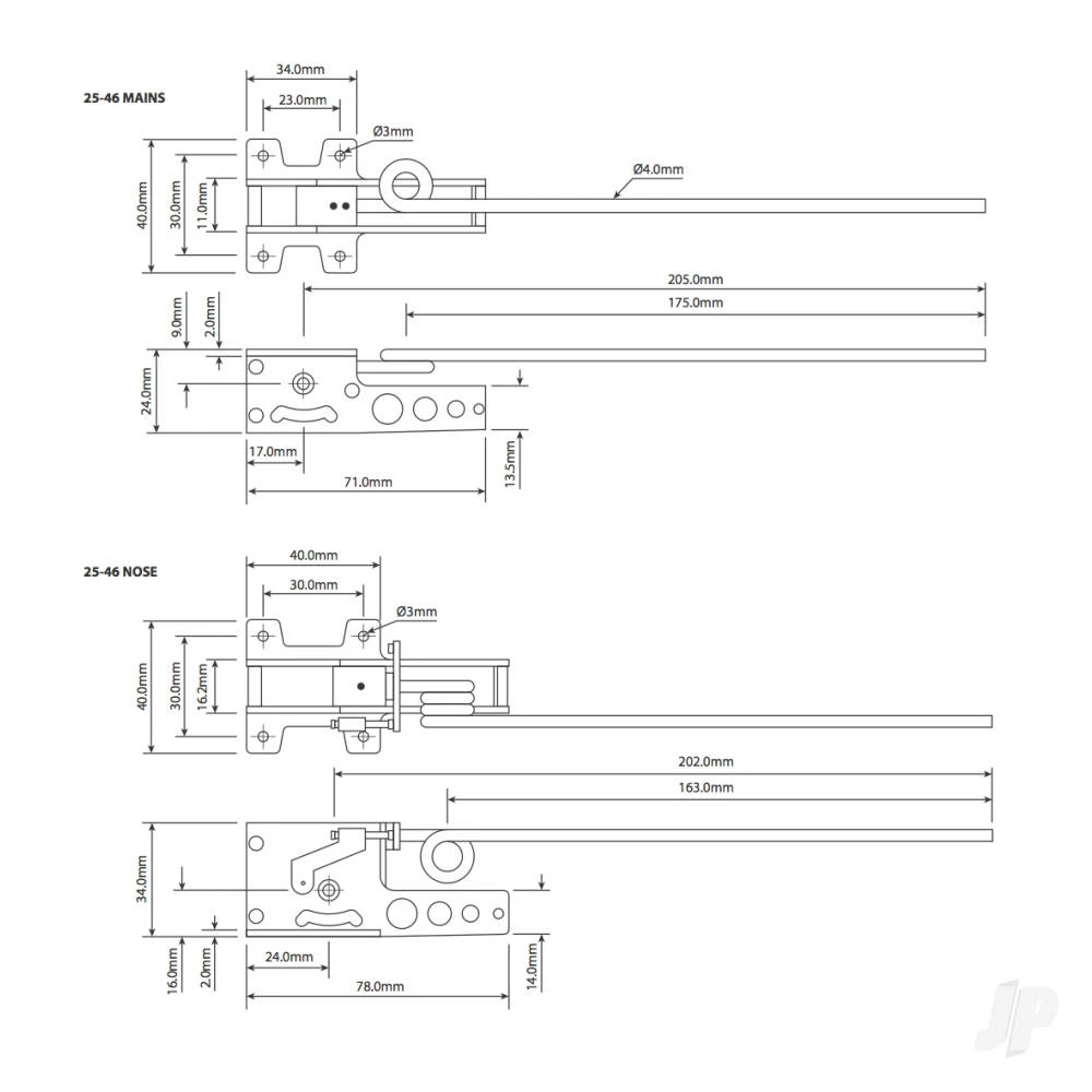 You don’t have to be a master modeler to add the realism of functioning retracts to your airplane. The completely self-contained retract system requires no air tank, complex linkages or extra servo. It can simply be bolted into place and plugged into the receiver. A specially-designed Y-harness is included that allows for the use of a single receiver channel to control all retract units.