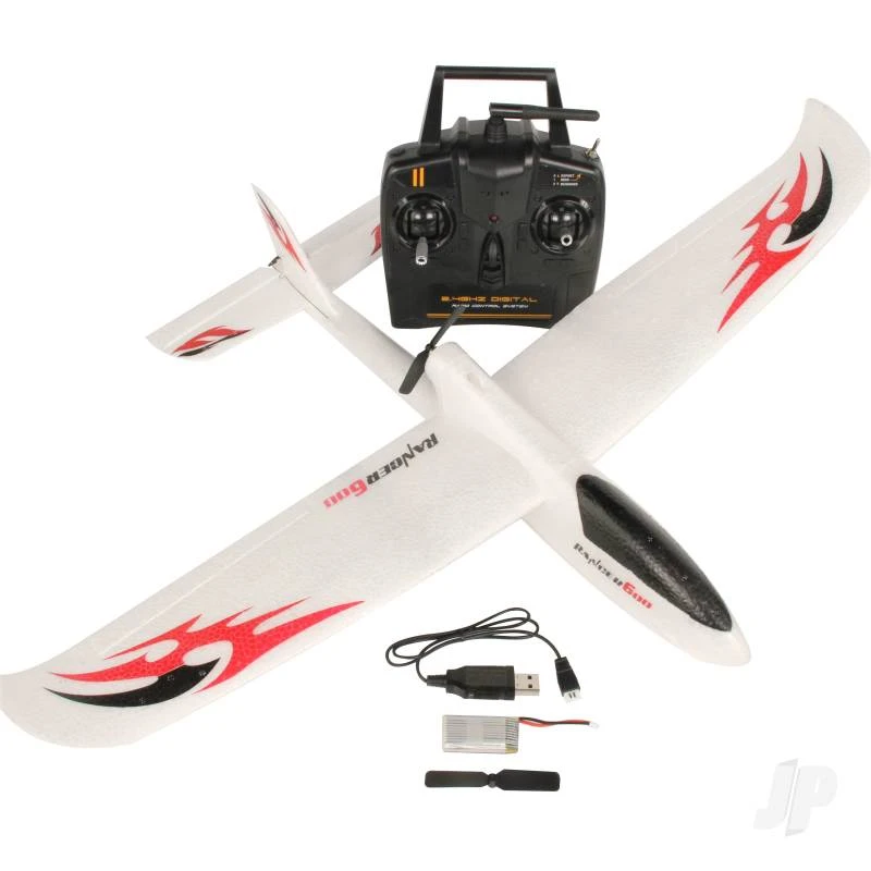 Your hobby budget will rarely return this much fun and performance for such a small investment, not to mention a level of sophistication that’ll have you wondering how we do it. So what’s the key to the Ranger 600’s success? Well, let’s start with the light and resilient carbon-braced EPO airframe, the high-lift wing section and the powerful brushed / direct drive motor. Crucial features that are joined by a rock-solid 2.4GHz 3-channel proportional radio system, turbulence-beating state-of-the-art 6-axis gyro stabilization and a long-duration 300mAh LiPo that gives 8 to 10 minute flights.